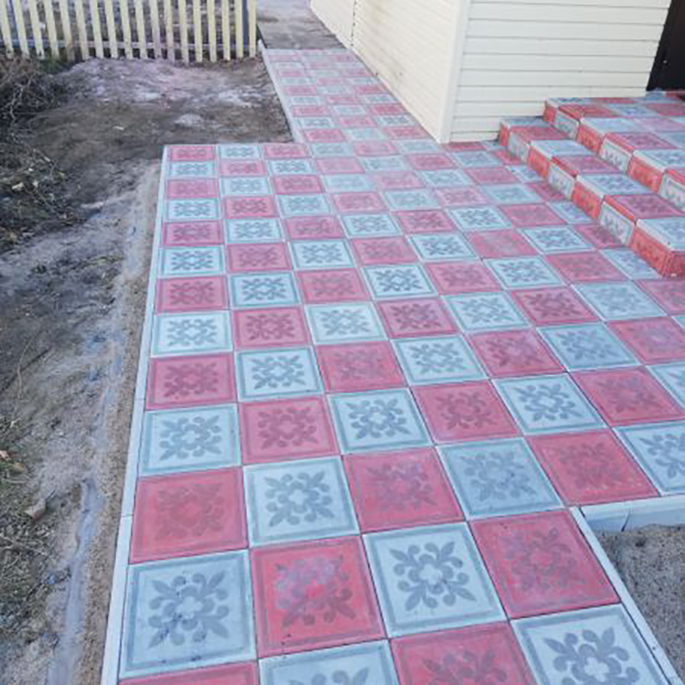 Плитка-40*40* используется  для обустройства пешеходных дорожек, стоянки легковых автомобилей, велосипедов, отмостки вокруг зданий, облицовки ступеней.